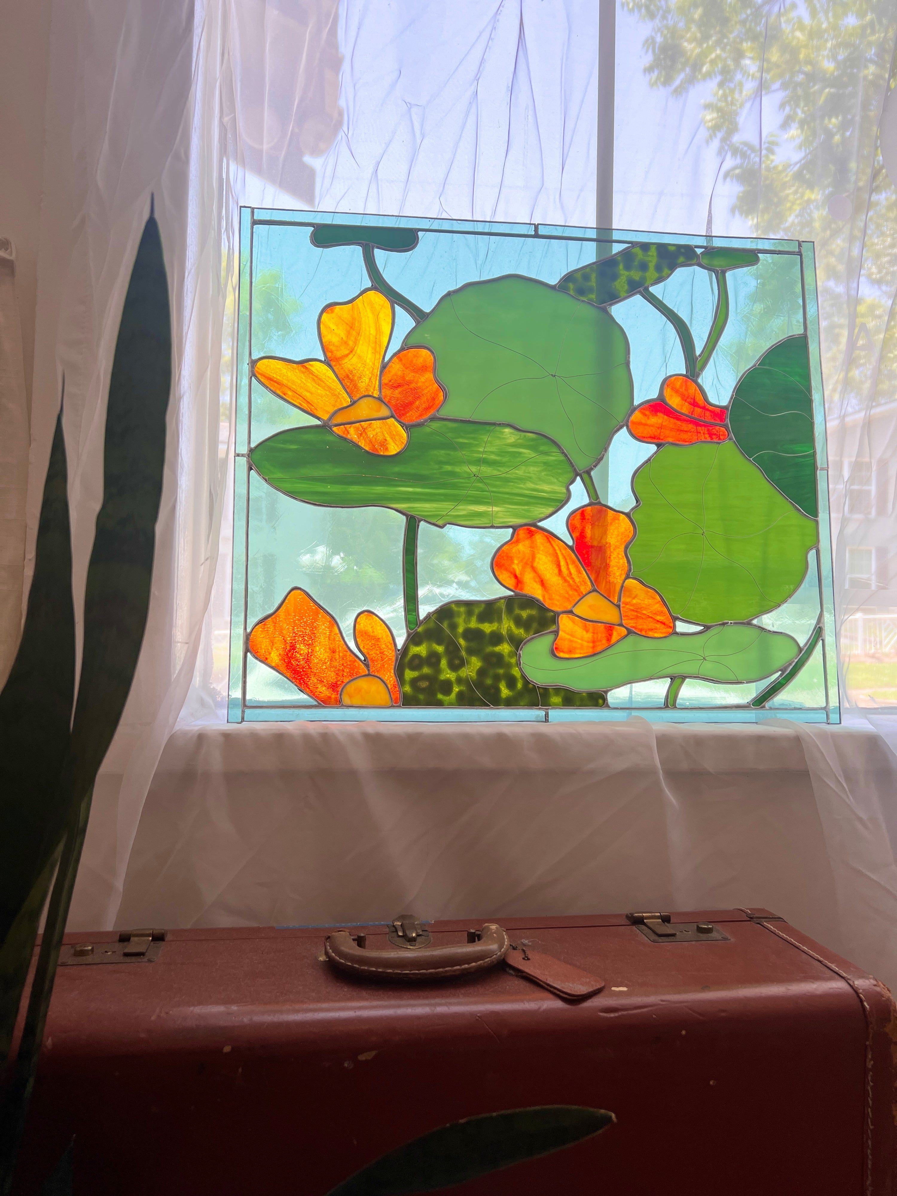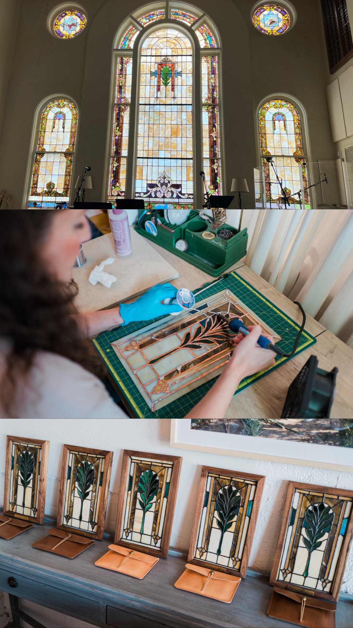 Whether you’re seeking a custom piece designed to compliment your space, want to bulk order multiple of your favorite design, or need repair & replication services in the copper foil method of stained glass, AC at Sway Design Studio will create something truly special for you.